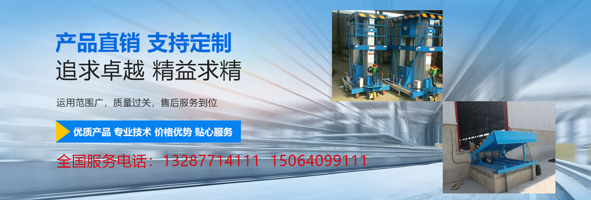 濟南領航升降機械有限公司是專業生產升降機,升降平臺,登車橋等產品的公司。公司產品共有八大系列六十多個品種,主導產品是剪叉式濟南升降平臺、 濟南升降貨梯、濟南升降機、鋁合金升降平臺及液壓固定式濟南登車橋等。公司產品符合國家行業標準。并且我們有多桅柱旋轉式鋁合金、 軌道智能式升降平臺得到同行業及專家的好評、質量和服務,在我們看來不再只是一個經濟指標,更是一個人文指標,致力于突出產品質量、價值及服務特色, 使我們同客戶之間建立的良好關系得以持久發展, “信譽”作為中國企業走向世界的準入證,是市場經濟的血管和命脈。一直以來,“信譽”代表了我公司的市場名譽, 得到了廣大客戶的認可,優質的售后服務源于企業,我公司始終以“品質為本,服務至上”作為企業宗旨。